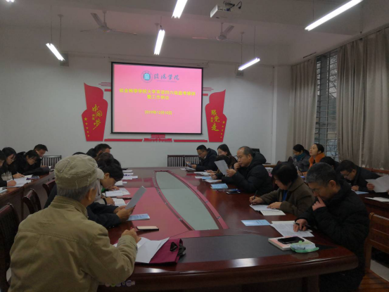12月10日下午5点半,社会科学学院在社科楼107会议室召开大学生英语四六级考务培训会,党总支书记副书记胡志国、教学干事王娜、行政干事程娇炎、学工干事王晶,以及各位四六级监考教师出席会议。