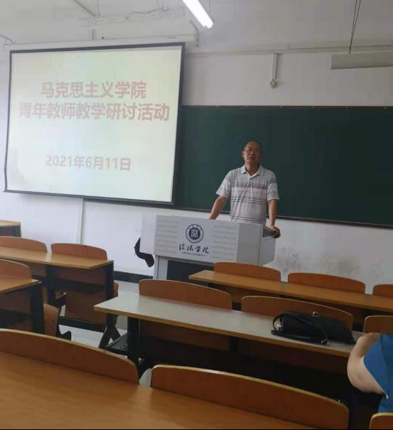 为有效推进思政课程教学改革、帮扶青年教师快速成长,马克思主义学院于6月11日上午在社科楼开展青年教师教学研讨活动。该活动在511室、512室分组展开,由党总支副书记、教学副院长分别担任专家组组长,各教研室主任和部分特聘专职教授担任评委。