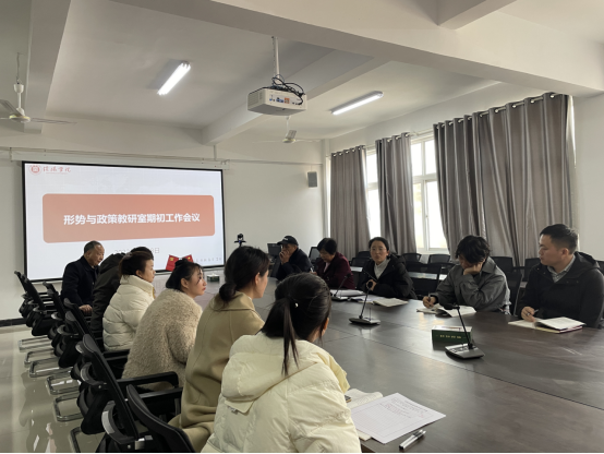 新学期伊始,为推进“形势与政策”课教学成效,稳扎稳打讲好每个专题,马克思主义学院形势与政策教研室于2月28日下午4:00在412会议室举行了期初工作筹备会暨《开创高质量发展新局面》集体备课会,形势与政策全体教研室成员参加备课会并讨论学习,会议由教研室负责人陈立新主持。