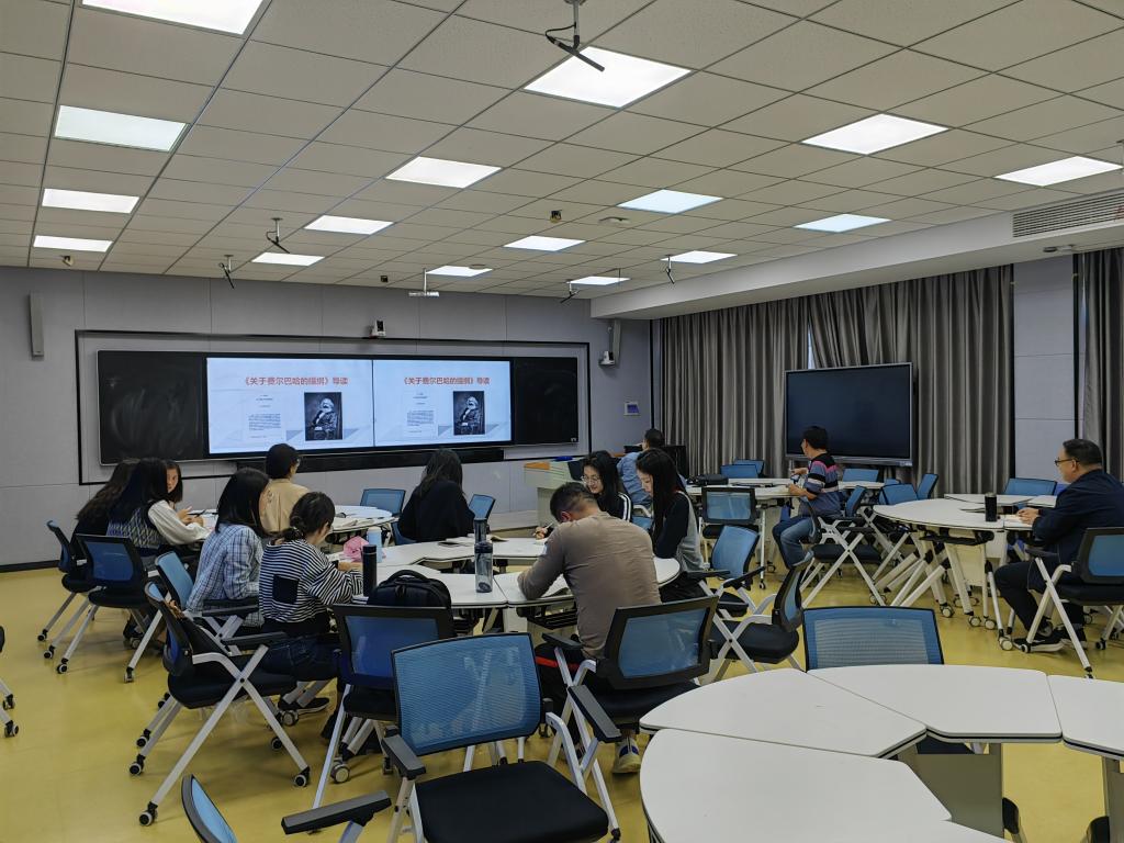 为了提升青年教师的理论修养水平,马克思主义基本原理教研室于10月16日下午在人文楼113开展了《关于费尔巴哈的提纲》经典原著阅读分享会活动。此次活动由教研室主任黄成勇主持并担任主讲,教研室全体青年教师参加。