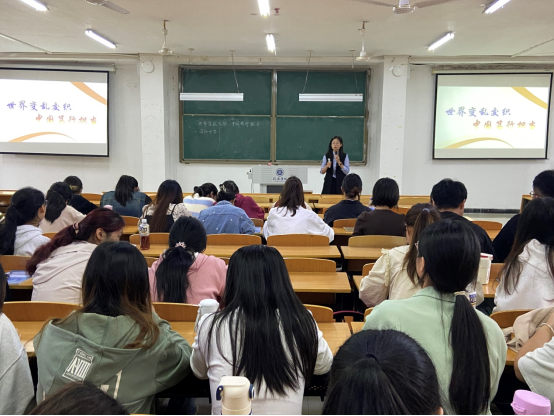 从世界变革动荡持续演进、大国关系深刻调整、中国智慧彰显担当三个部分对当前国际局势和中国的大国担当做了详细讲解,让学生深刻认识新时代中国以因势而谋、迎难而上的进取精神,胸怀天下、引领时代的大国担当,持续为变乱交织的世界提供破解难题的良方、凝聚团结合作的力量。