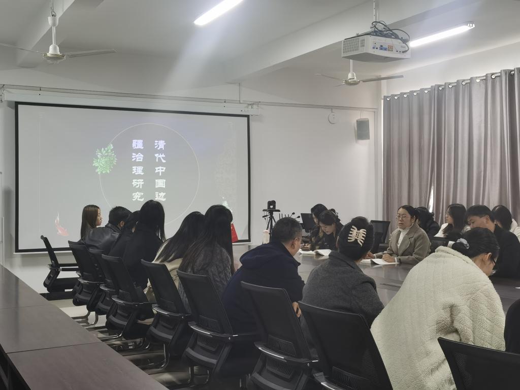 为持续加强马克思主义学院青年教师的理论素养,提高青年教师的学术水平,马克思主义学院持续开展青年教师读书会活动。本次读书会由中国近现代史纲要教研室教师李良红进行分享,分享书目为马大正的《清代中国边疆治理研究》,读书会由党总支书记陈金强主持,全体青年教师参加了此次读书会。