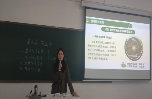 2024年11月27日下午,马克思主义学院开展了本学期第四次公开课教学活动,由思想道德与法治教研室的张雅逸老师主讲,授课主题为“投身崇德向善的道德实践”,马克思主义学院教师参加了观摩学习活动。