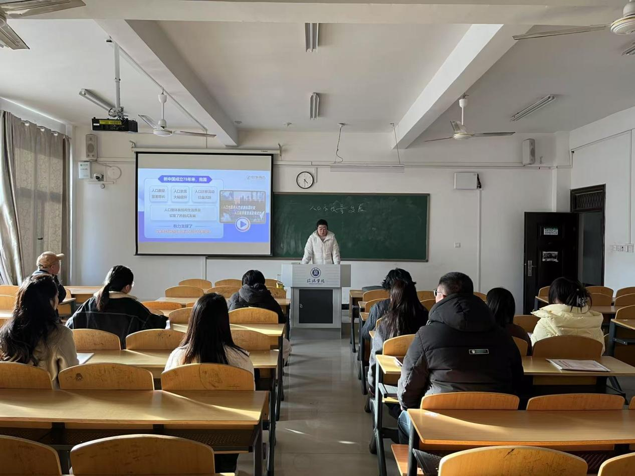 第二阶段,骨干教师陈立新结合本学期课程中的“以人口高质量发展支撑中国式现代化”一讲,进行了相关的教学展示和分享。首先,陈老师系统梳理了本讲内容的相关逻辑框架,指出要在教学中先给学生理顺教材中的内容结构,让大家对相关知识有一个全面综合的把握和认知。其次,陈老师提到在本讲内容中,我们主要是围绕“人口发展历程和趋势特征”、“人口发展的热点问题”、“人口高质量发展的改革举措”这三部分进行具体授课的,要注意知识点之间的内部联系,突出相应的内容重难点,详略得当的进行课堂授课活动。然后,陈老师也强调了形势与政策课时政性、创新性强,面对的教学对象复杂多样,各位老师在教学过程中要注意结合学生的相关专业背景和学情特点进行针对性授课,注意调动学生的积极主动性,体现本门课程的教学特色,进而能实现相应的教学目的。最后,新入职教师李冉结合本讲内容进行了具体的说课环节,主要从教材分析、学情分析、教学目标、教学方法及板书设计等方面详细讲解了关于人口问题的相关教学内容。