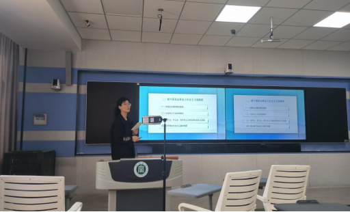 第二阶段由黄冉老师主讲“党的二十届三中全会精神融入《中国近现代史纲要》教学的思考”,她从“是什么”、“为什么”、“怎么融”等三个方面阐释了学习好贯彻好全会精神是当前和今后一个时期全党全国的一项重大政治任务。要让学生深刻认识历史和人民怎样选择了马克思主义、选择了中国共产党、选择了社会主义道路、选择了改革开放,培养学生树立厚重的历史感、强化理论的纵深感、明确奋斗的现实感、找准前行的方向感,提高运用科学历史观、方法论分析问题和解决问题的能力,增强中国特色社会主义道路自信、理论自信、制度自信、文化自信。