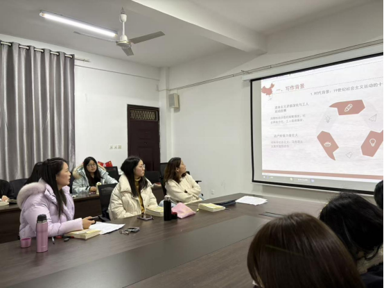 为深化对马克思主义理论体系的理解,把握科学社会主义的发展脉络,提升教师将原著融入教学的能力。12月23日,马克思主义基本原理教研室在学院412会议室开展“马克思主义经典原著”专题读书会活动。马克思主义基本原理全体授课教师参会,活动由熊天玉老师主持。