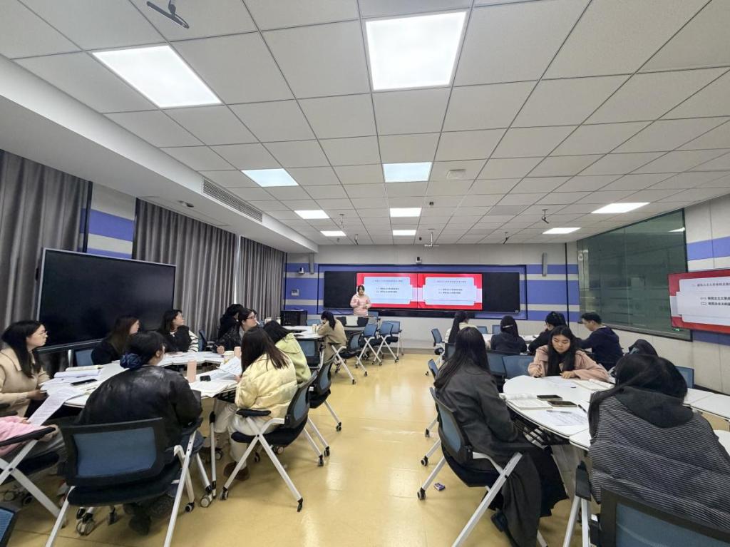 第二阶段,两院全体教师围绕新时代伟大变革成功案例如何有效融入“毛泽东思想和中国特色社会主义理论体系概论”课程教学展开专题研讨。韩淼、杨宁等老师聚焦案例融入的原则立场、路径方法、素材遴选与课堂运用等关键环节,结合自身教学实践,从不同角度进行了深入交流。通过思想碰撞,进一步凝聚了教学共识。