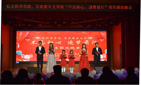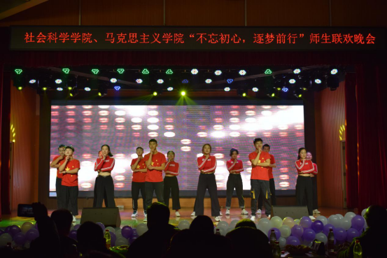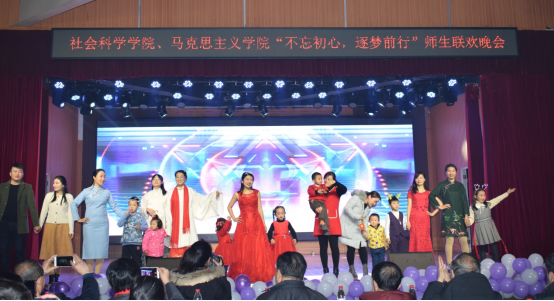 晚会结束后,所有演出人员在舞台上与领导老师们合影留念。此次师生联欢晚会不仅给大家带来了欢声笑语,也充分展示了我院大学生昂扬向上、朝气蓬勃的精神风貌。回首2019年,社会科学学院、马克思主义学院在学校正确领导下,取得了可喜成绩。展望2020年,社会科学学院、马克思主义学院将不忘初心,牢记使命,砥砺奋斗,筑梦前行,再创新的辉煌。