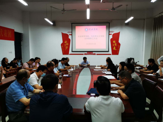 9月15日下午,马克思主义学院在社科楼107召开全体教职工会议,校党委专职副书记施昌海、党委宣传部负责人李肖利莅临指导,马克思主义学院全体教职工参会。会议由学院党总支副书记胡志国主持。