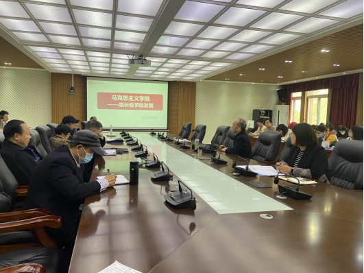 为深入贯彻马克思主义学院全院教师对迎评促建理念、思路、举措、成效有更加透彻的理解与思考,让全体教师熟练掌握评估工作流程。3月8日下午,马克思主义学院全体教职工在人文楼208会议室开展了马克思主义学院“迎评六说”之院长说学院发展活动。