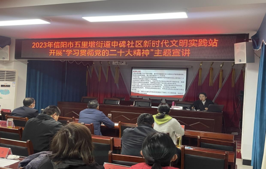在宣讲活动中,结合新时代十年来信阳市的发展实际、对2023年工作以及对未来信阳发展的相关展望,牢记国之大者、紧扣省之要者、抓好市之重者,深入剖析党的二十大精神,从主题到成果、从理论到实践,用讲故事、拉家常的方式拉近与基层党员群众的关系,以生动活泼接地气的方式为群众献上精彩的讲演,生动宣讲党的二十大精神。在与社区领导和村里的党员同志们进行了交流,并介绍了信阳学院发展情况。通过本次宣讲,大家纷纷表示,要从党的二十大精神中汲取对党忠诚的力量、担当责任的力量、服务人民的力量,确保各项任务落到实处、取得实效。