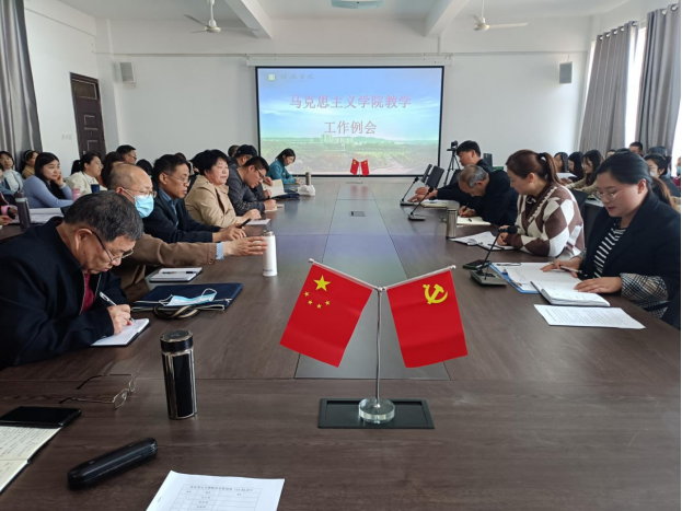 3月7日,马克思主义学院全体教职工在413会议室召开本学期第三周教学工作会议暨2023年第一季度意识形态工作专题会。会议由党总支副书记陈金强主持。