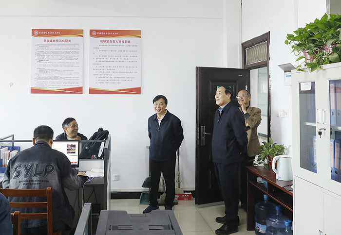 随后,王北生、施昌海走进有关教研室和省级样板党支部工作室、大别山文化育人工作坊,与正在工作的教师进行亲切交流,表示诚挚慰问。