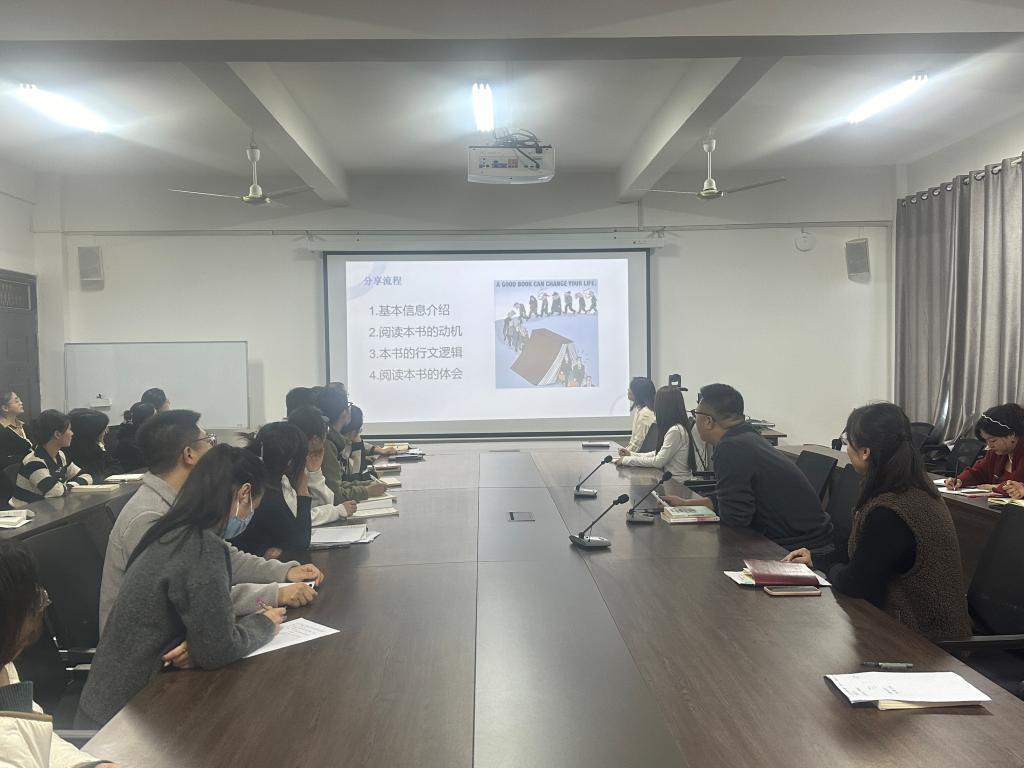 2024年11月5日,信阳学院马克思主义学院在人文楼南楼会议室举办新教师培训读书会。读书会由骆文豪老师分享阅读书目《现代化进程的矛盾与探求》一书。马克思主义学院执行院长朱新荣主持会议,学院全体新入职教师参加此次活动。