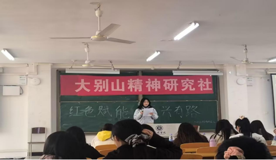 在浉河校区人文楼408教室,社团成员以大别山精神为基,向三大领域进军:红色文化传承板块,他们探寻红色故事,保护修缮遗迹,让红色记忆永不磨灭;乡村振兴实践领域,依托红色资源打造旅游热点,以情怀感召人才归乡,为乡村产业注入活力;生态文明建设方面,秉持先辈守护自然的初心,倡导绿色发展,重塑绿水青山。参赛选手们依次上场,以“红色赋能,振兴有路”为主题,以三大领域方向,用生动的语言、鲜活的事例,提出具有创造性的活动方案,在弘扬红色文化,为社会贡献自己的力量的同时,为大别山精神的传承和发展注入了新的活力。