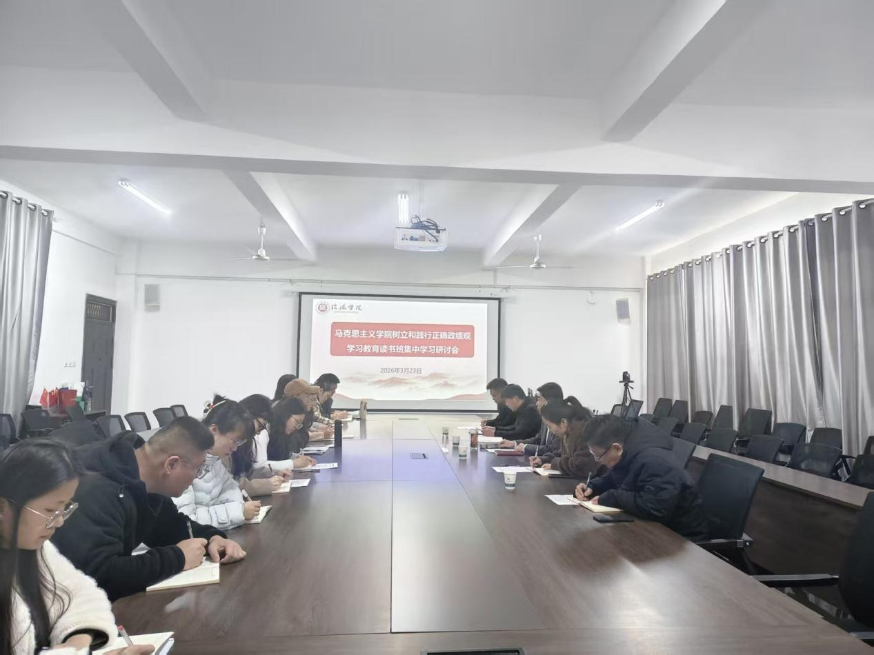 为推进树立和践行正确政绩观学习教育工作走实走深,3月23日,马克思主义学院在人文楼南楼412会议室召开树立和践行正确政绩观学习教育读书班集中学习研讨会。校党委书记江玉安、党办主任娄琪等出席学习研讨会。马克思主义学院班子成员、总支委员、党支部书记及教工党员代表参加了会议。会议由学院党总支书记陈金强主持。
