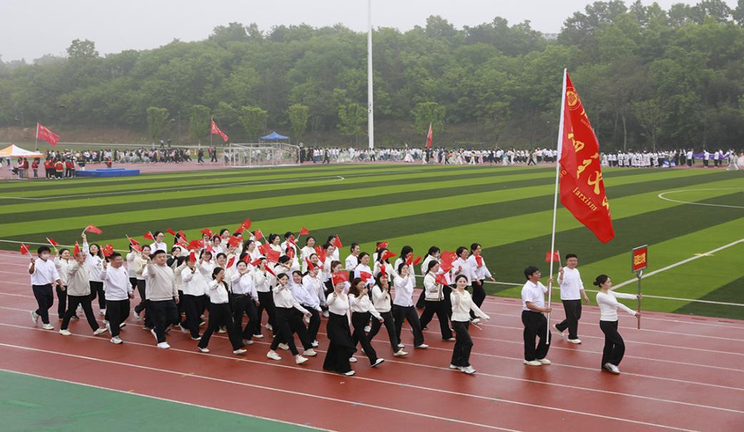 信阳学院2026年春季运动会如期举行,开幕式上彩旗飘扬、气氛热烈,马克思主义学院全体教职工组成方阵,以昂扬之姿亮相赛场,随后在各项赛事中奋勇争先、斩获荣誉,充分展现了崇德向善、拼搏进取、凝心聚力的良好风貌。