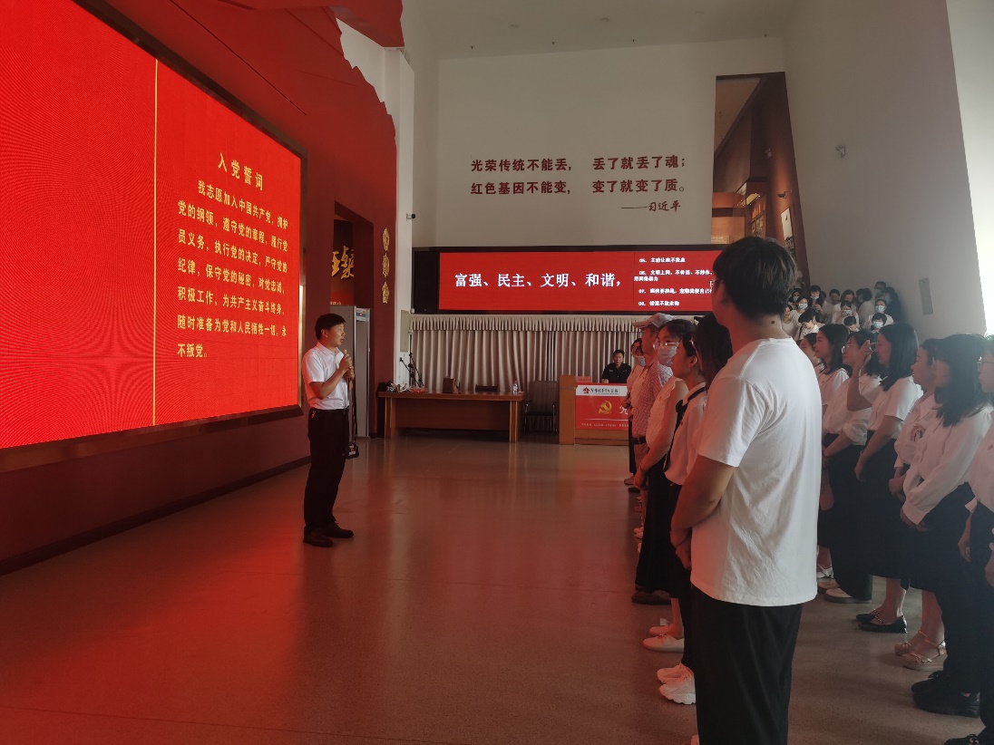 参观伊始,全体党员在“不忘初心,牢记使命”主题展馆大厅,面对鲜红的党旗,重温入党誓词,唤醒和铭记入党初心,更加坚定共产党员的理想信念。陈金强指出:今天我们在此开展“追寻红色足迹,弘扬大别山精神”主题党日活动旨在加强党员同志理想信念,一个党员一面旗帜,作为一名共产党员应率先垂范,爱岗敬业,用自己的实际行动投入到自己工作中去。作为一名思想政治理论课教师要坚守立德树人初心使命,将大别山精神入心、入脑,以饱满的精神状态投入学校本科教学合格评估中去,为培养社会主义建设者和接班人作出积极贡献。