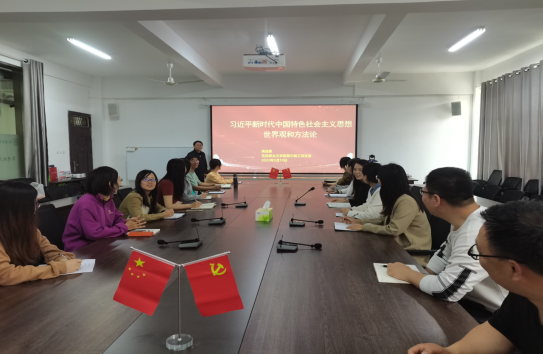 为深入学习贯彻习近平新时代中国特色社会主义思想,全面贯彻落实党的二十大精神。5月11日下午,马克思主义学院第三党支部在412会议室召开《习近平新时代中国特色社会主义思想的世界观和方法论专题摘编》主题党课,支部全体党员参与会议,会议由党支部委员黄成勇主持。
