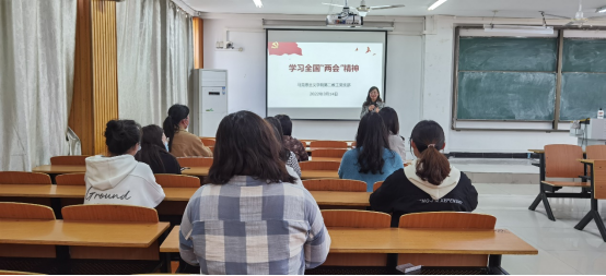 3月14日上午,马克思主义学院第二教工党支部在人文楼413召开全国“两会”精神专题学习会议,会议由支部组织委员余晓月主持,全体党员参加了此次会议。