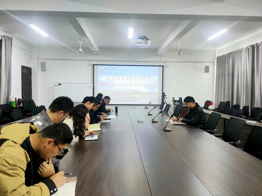 2024年3月20日上午,马克思主义学院党总支在人文楼南412会议室召开理论学习中心组集体学习会。党总支支部委员、教研室主任参加会议,会议由党总支书记陈金强主持。