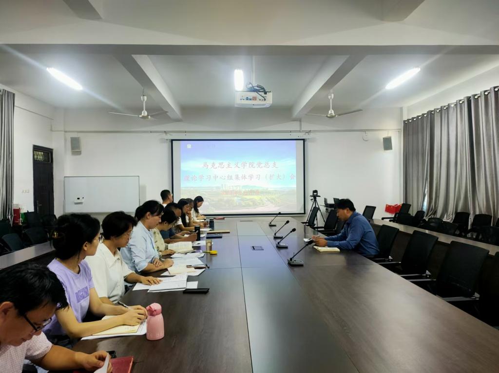 2024年9月27日上午,马克思主义学院党总支在人文楼南412党员活动室召开理论学习中心组(扩大)会议,专题学习全国、全省教育大会精神。党总支委员、各支部书记、支部委员、教研室主任参加了会议,会议由党总支副书记陈金强主持。