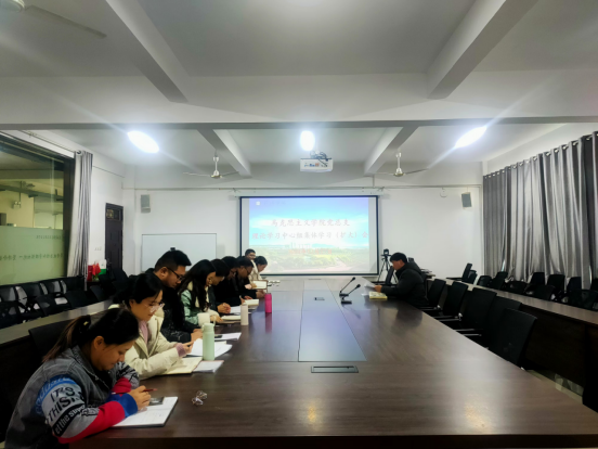 2024年12月17日下午,马克思主义学院党总支在人文楼南412党员活动室召开院党总支理论学习中心组集体学习(扩大)会,专题学习总书记对新时代马克思主义理论研究和建设工程作出的重要指示。院总支委员、支部书记、支部委员、教研室主任参加会议,会议由党总支副书记陈金强主持。