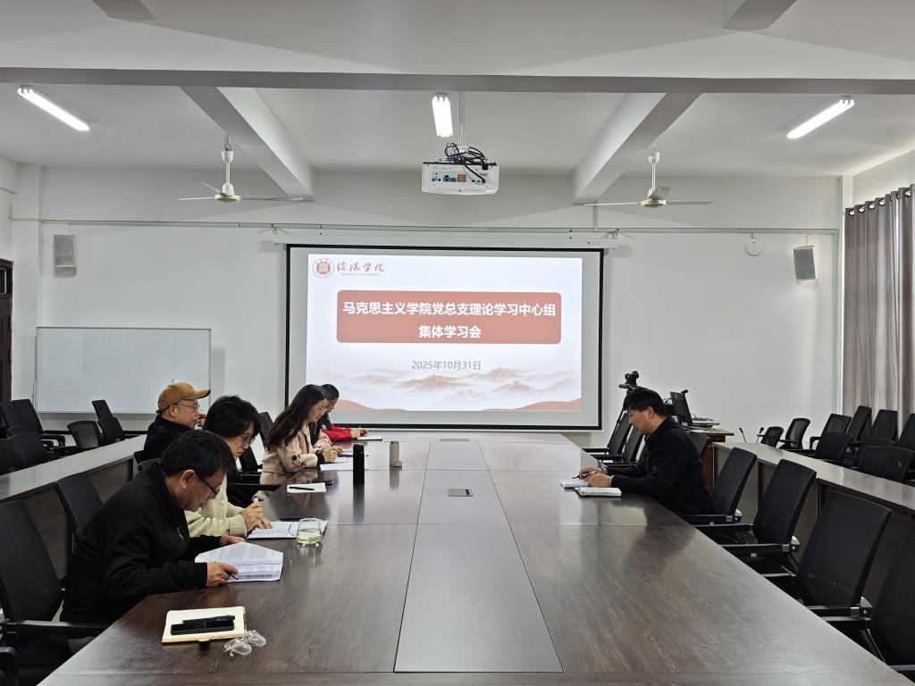 为深入学习贯彻党的二十届四中全会精神,10月31日,马克思主义学院理论学习中心组集中学习党的二十届四中全会公报及《中共中央关于制定国民经济和社会发展第十五个五年规划的建议》相关内容。院党总支委员、支部书记及教研室主任参加会议,会议由党总支书记陈金强主持。